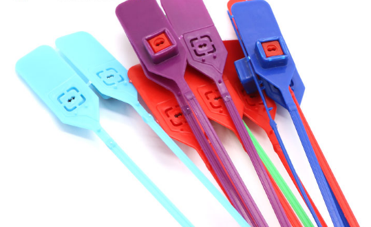 塑料封条的作用和制作工艺介绍:封条采用PP塑料一次注塑成型,封条内夹有钢片,产品在零下45度,零上50度不变型,表面采用冲压或激光打标志、流水号、条码,锁杆为2*5扁杆,施封时随意调节抽紧,颜色可制成红、兰、绿、黄,也可根据用户要求制作成其他颜色等。